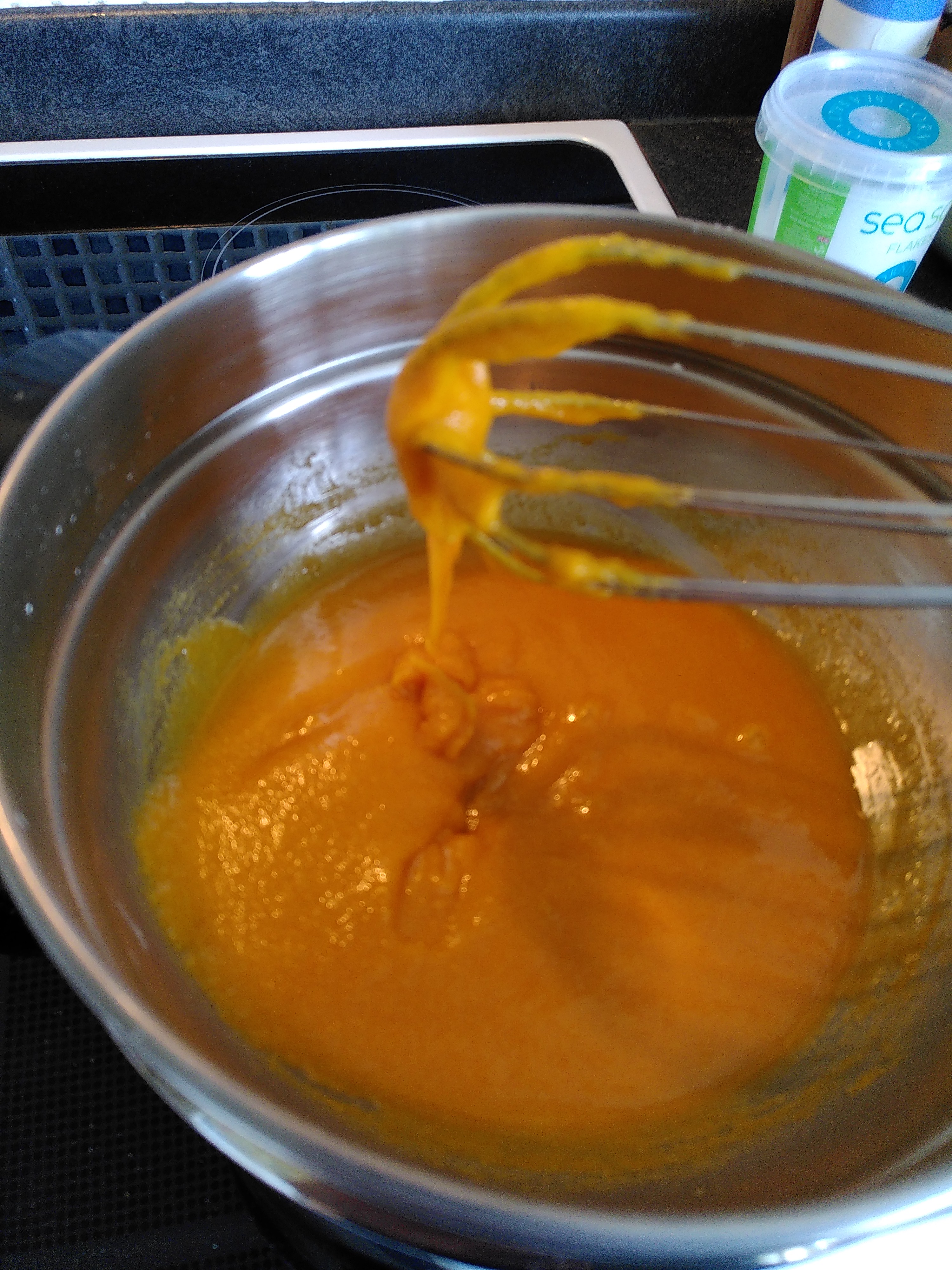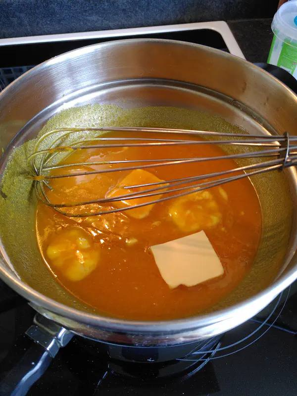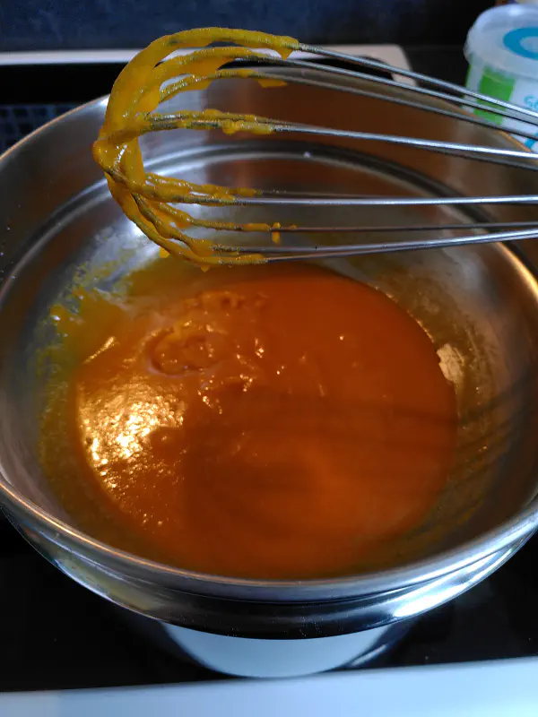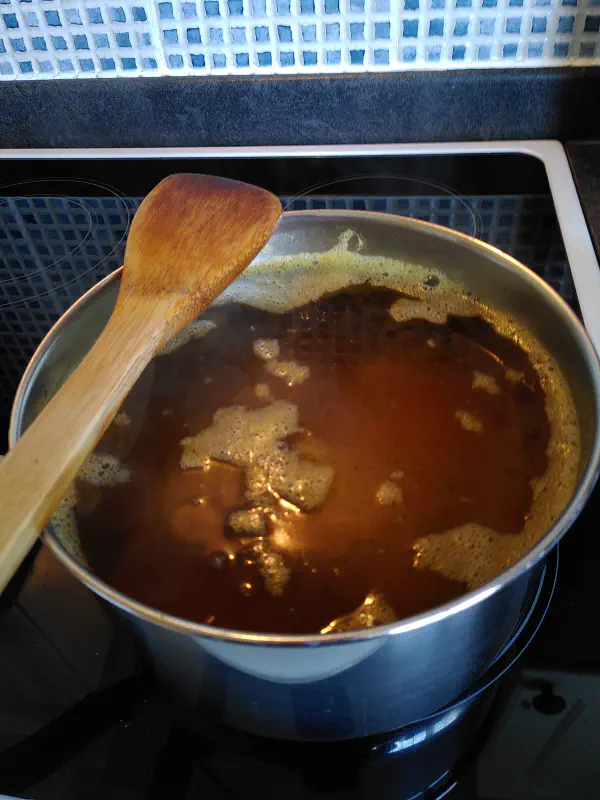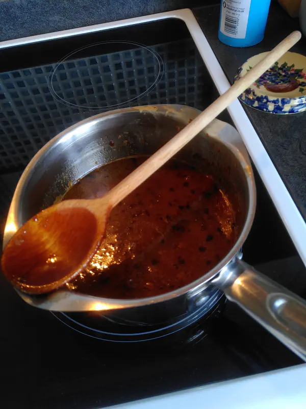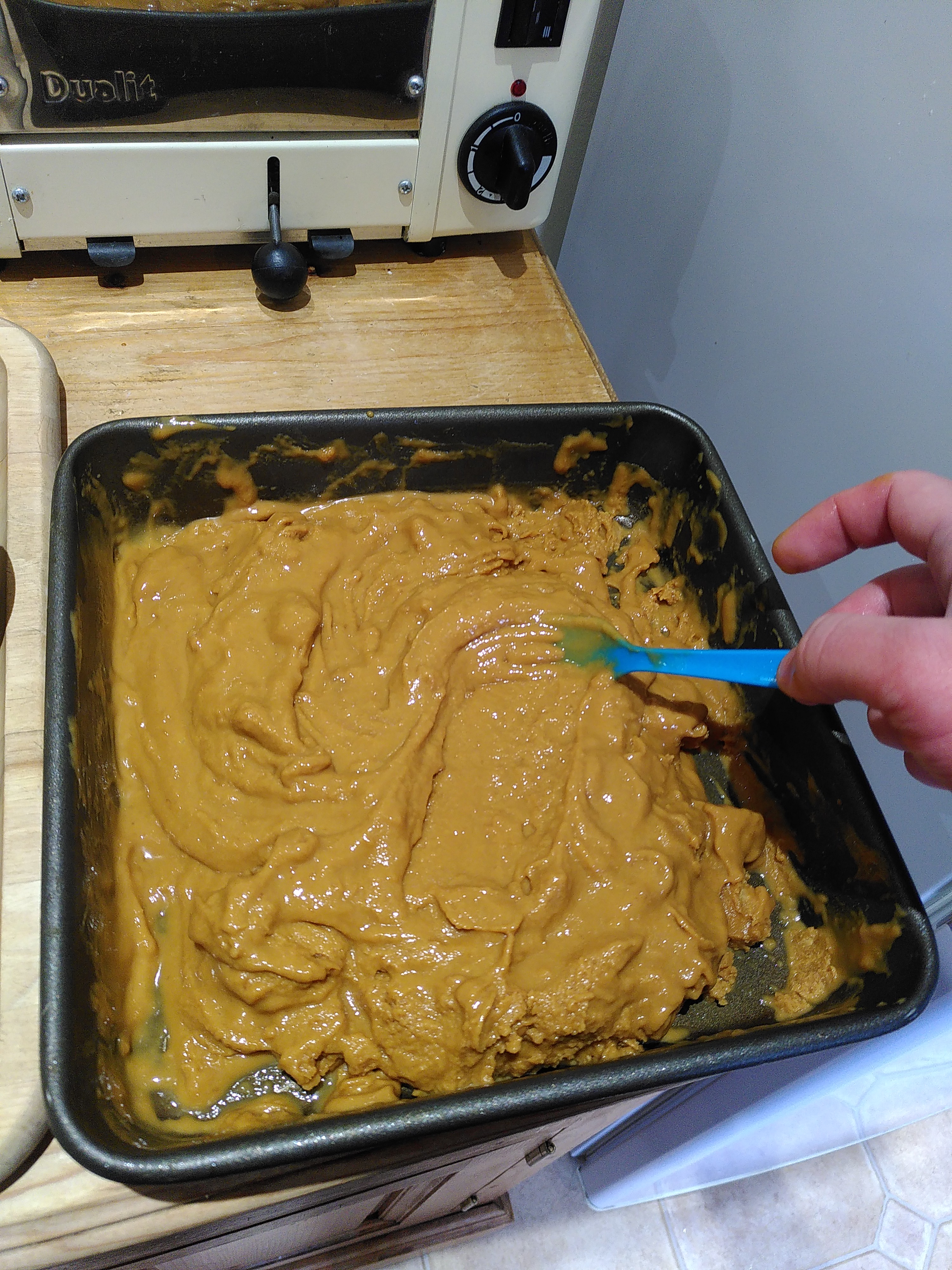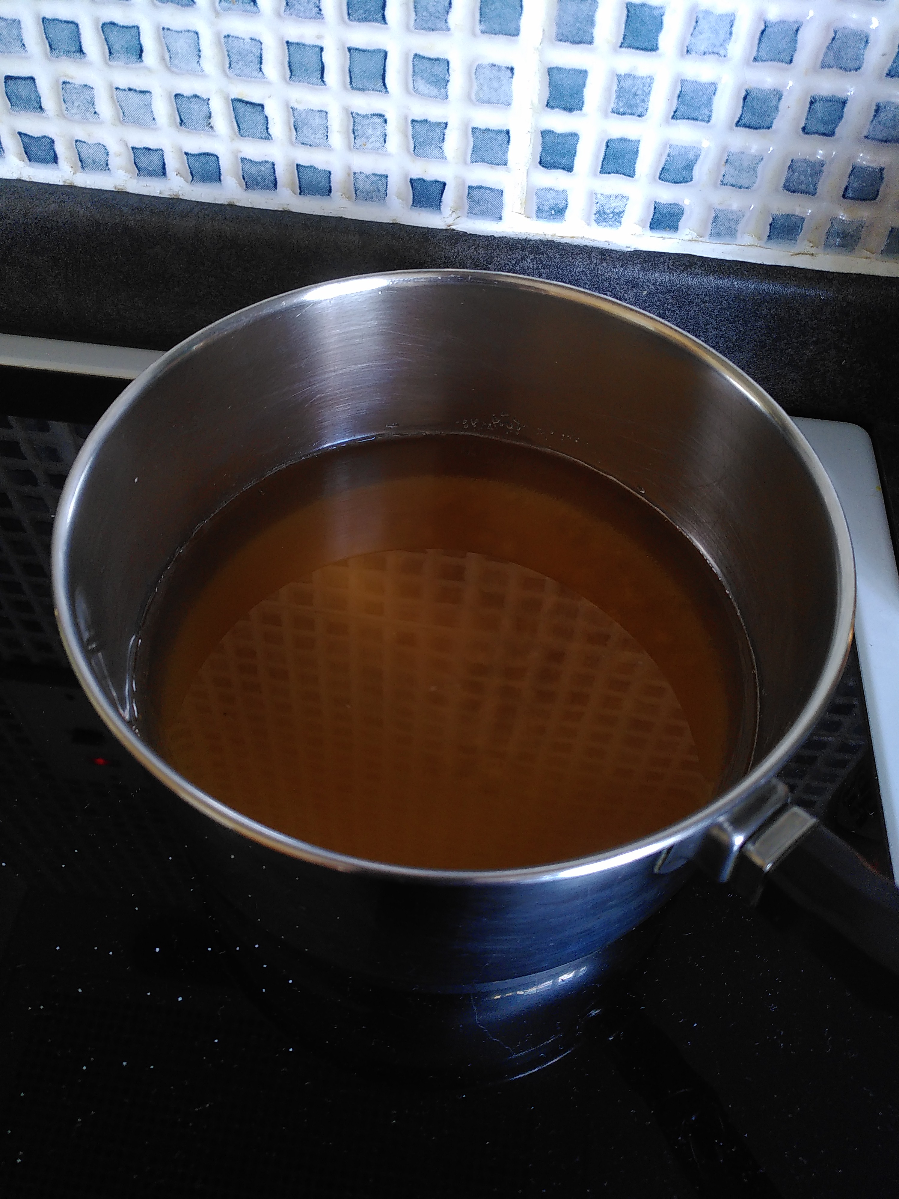 unappetising-looking sludge, as well as my hand (with a load of molten caramel,