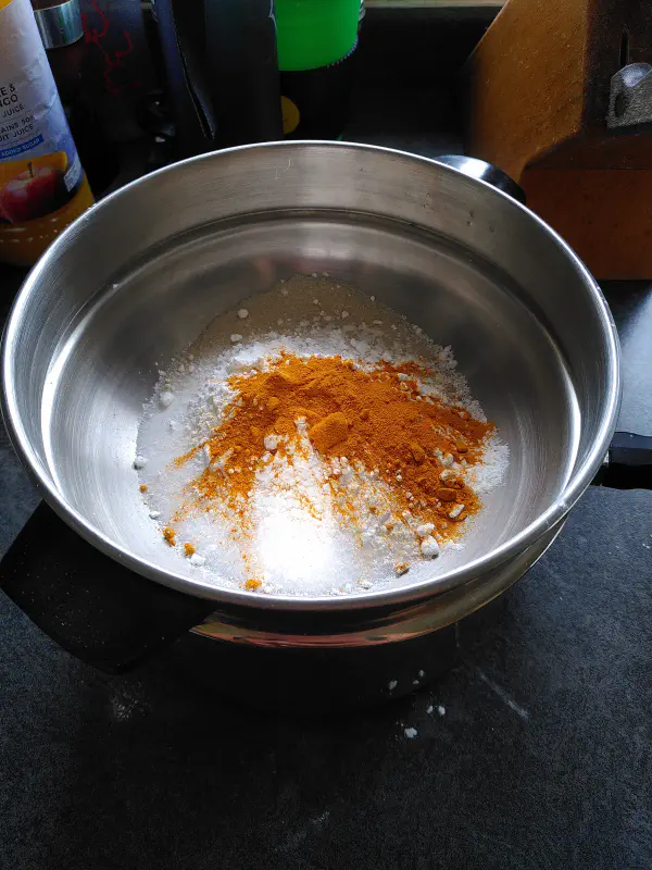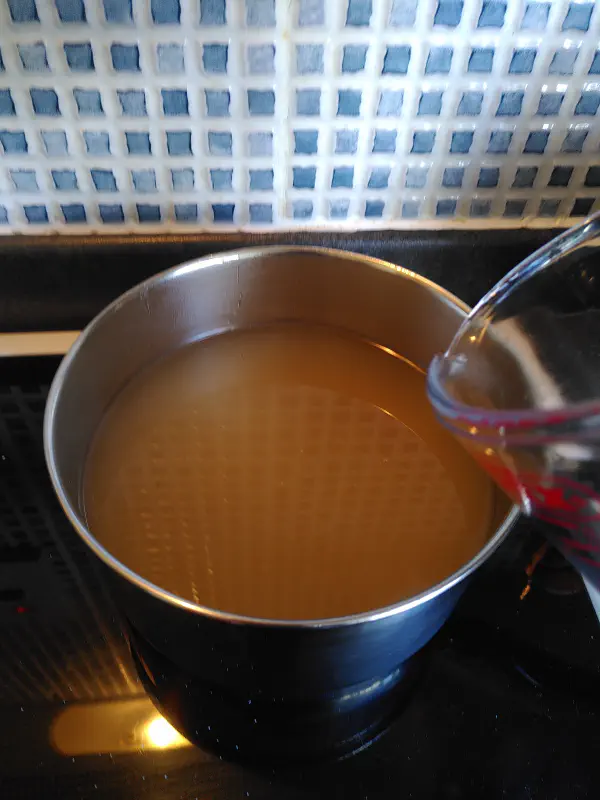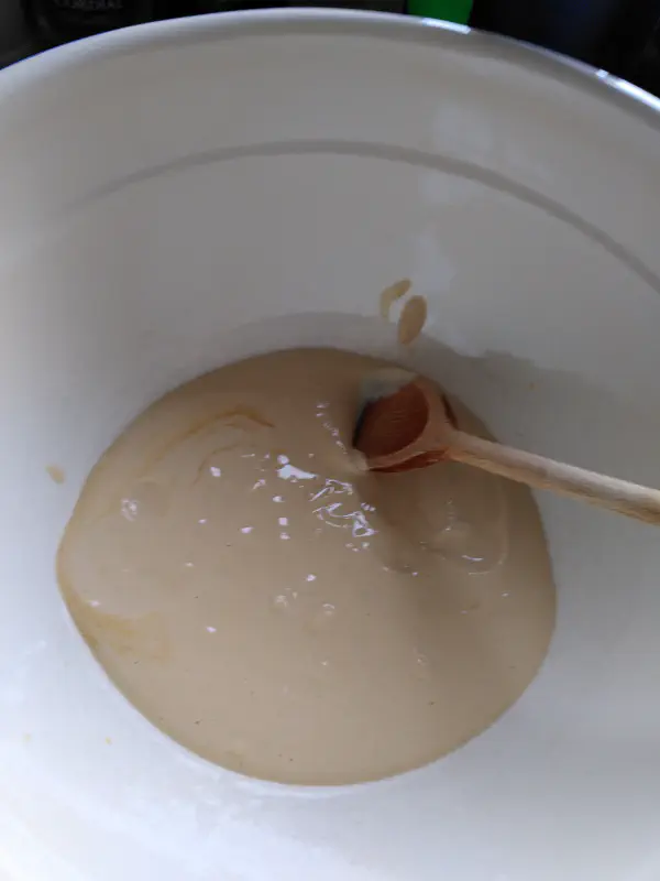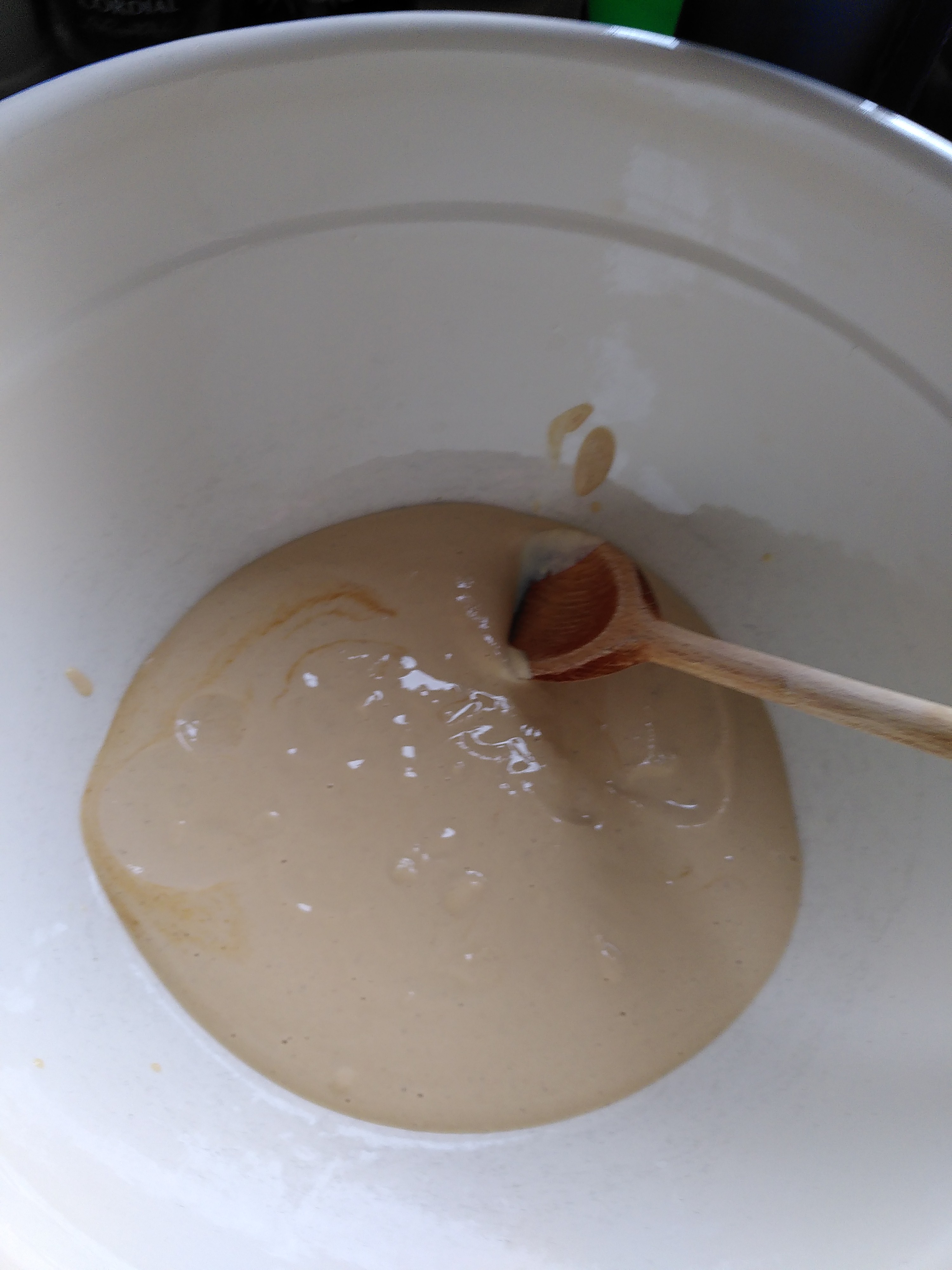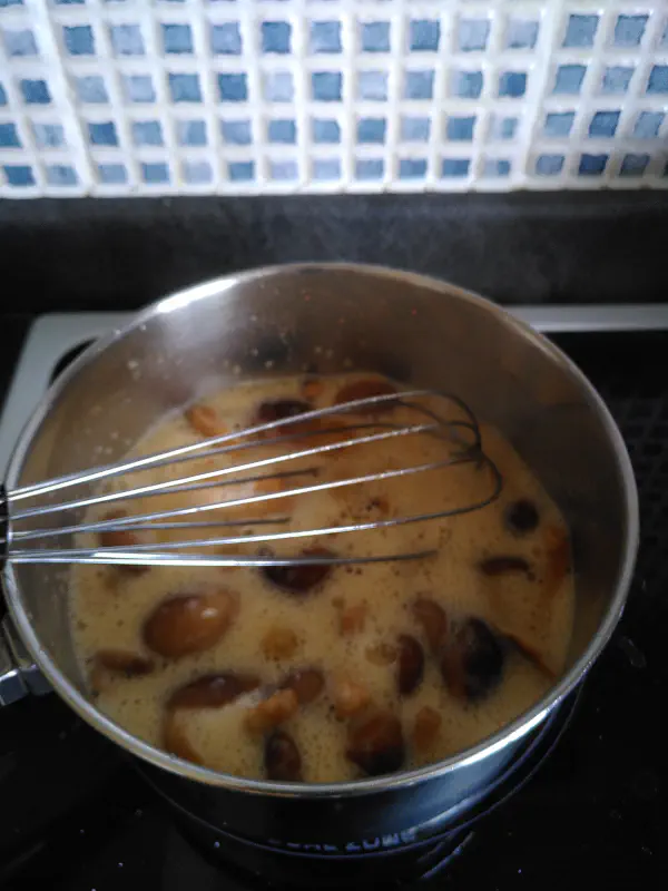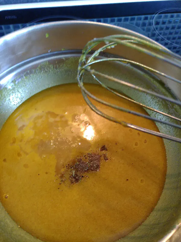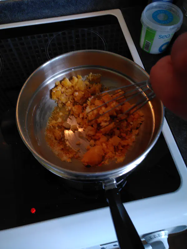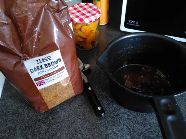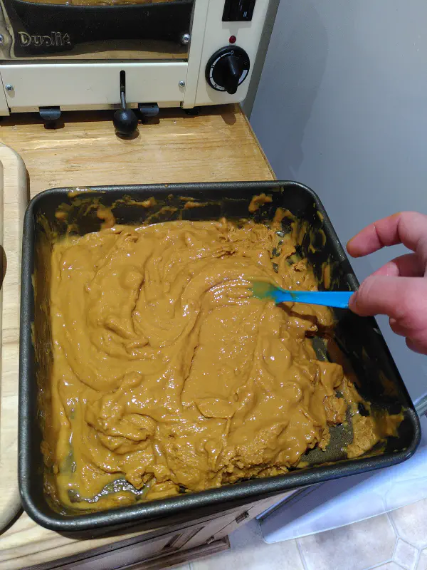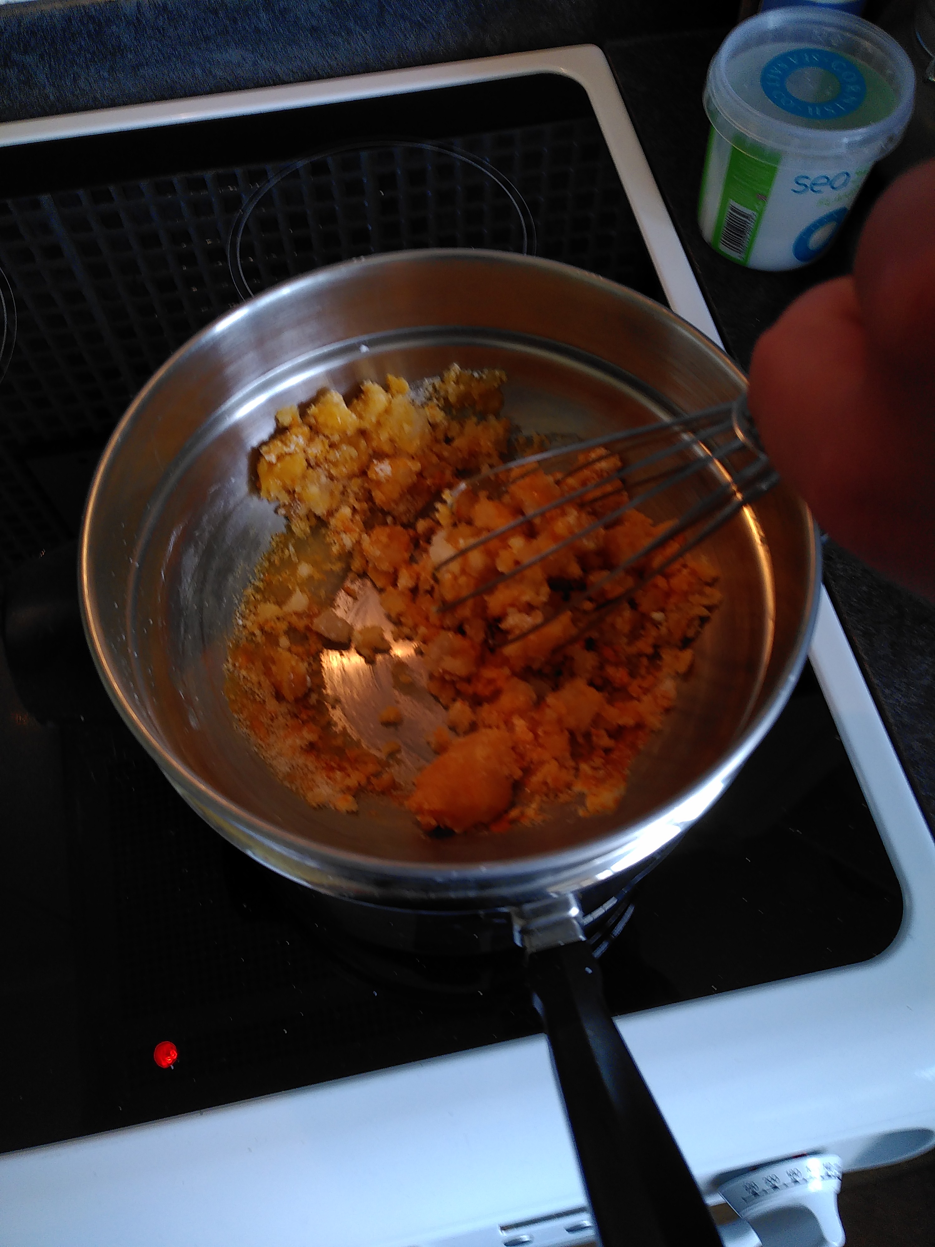 unappetising-looking sludge, as well as my hand (with a load of molten caramel,