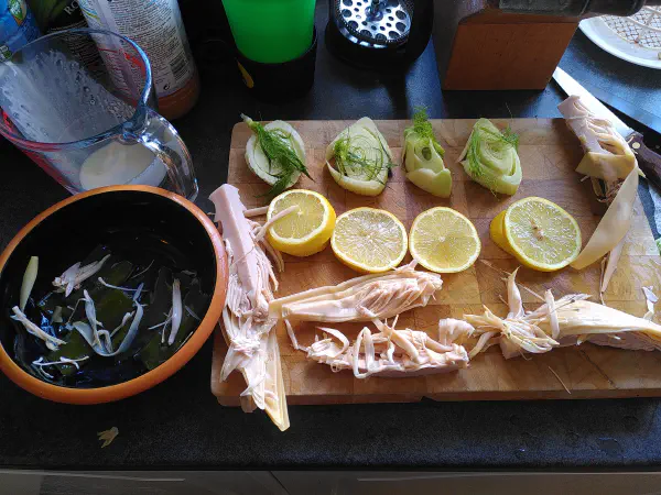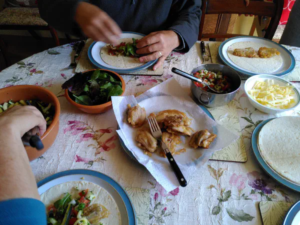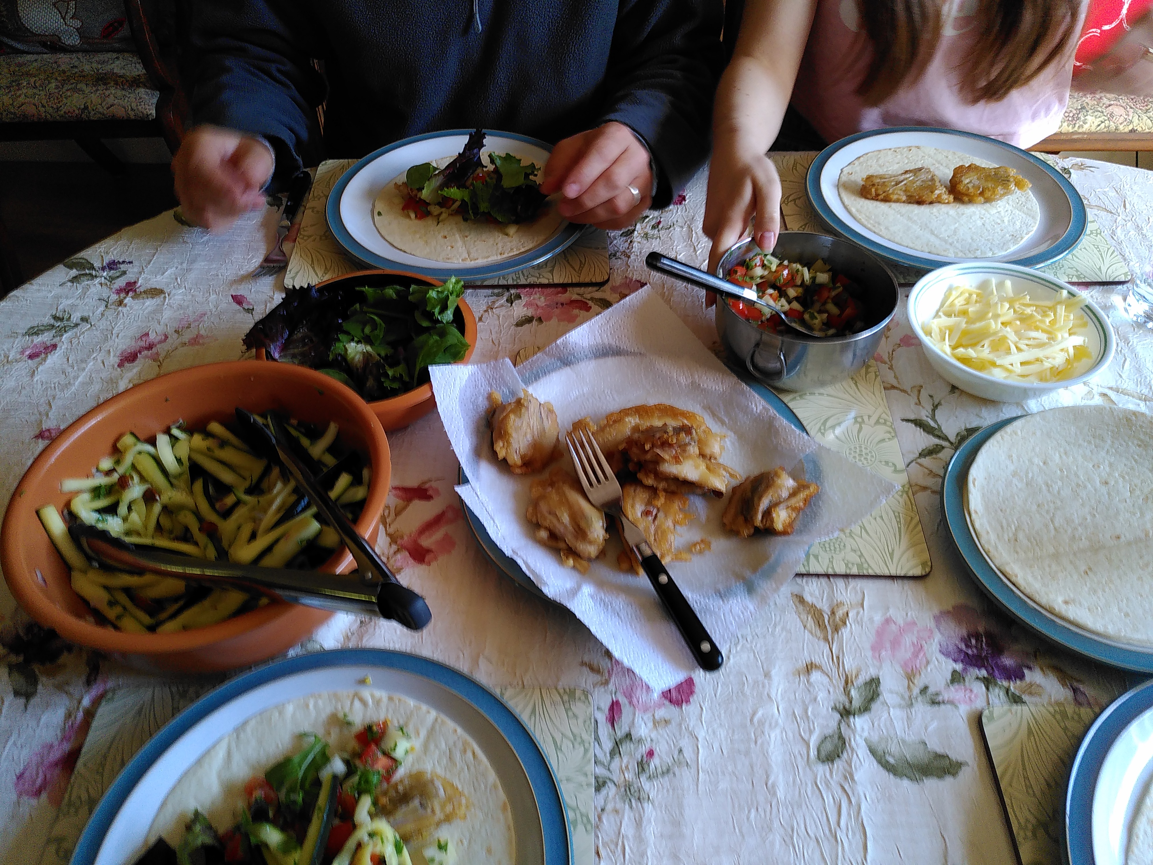 Fish tacos, raw zucchini salad and cider vinegar tart ¶