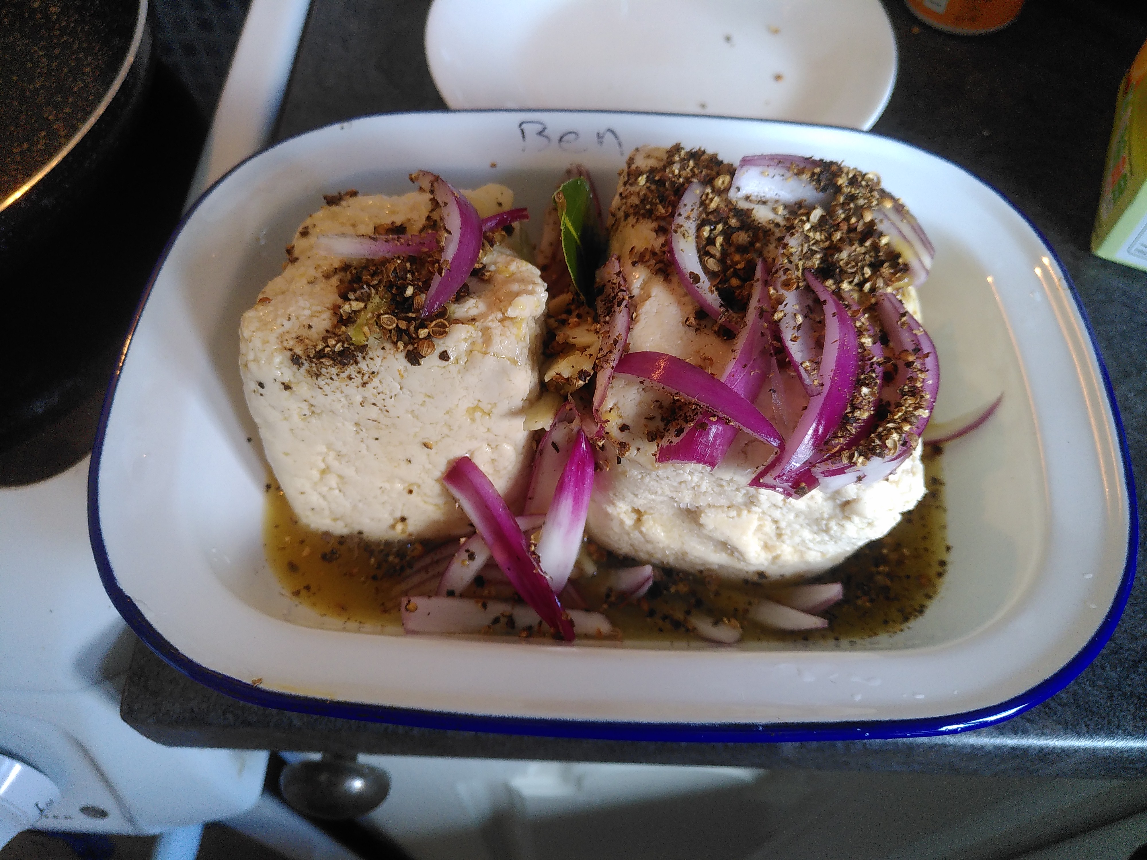 basted tofu, but this all worked out in the end even if I did burn the onion in