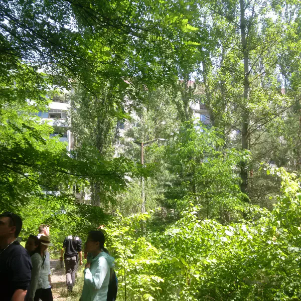 We’d be walking through what felt like a forest until oh hey an apartment block or oh hey a lamppost. We went up to the top of a 16-storey block of flats and explored schools, shops, kindergartens and the hospital. The guide would basically lead us in, then disappear and leave us to our own devices until suddenly we’d hear his voice calling from miles away.