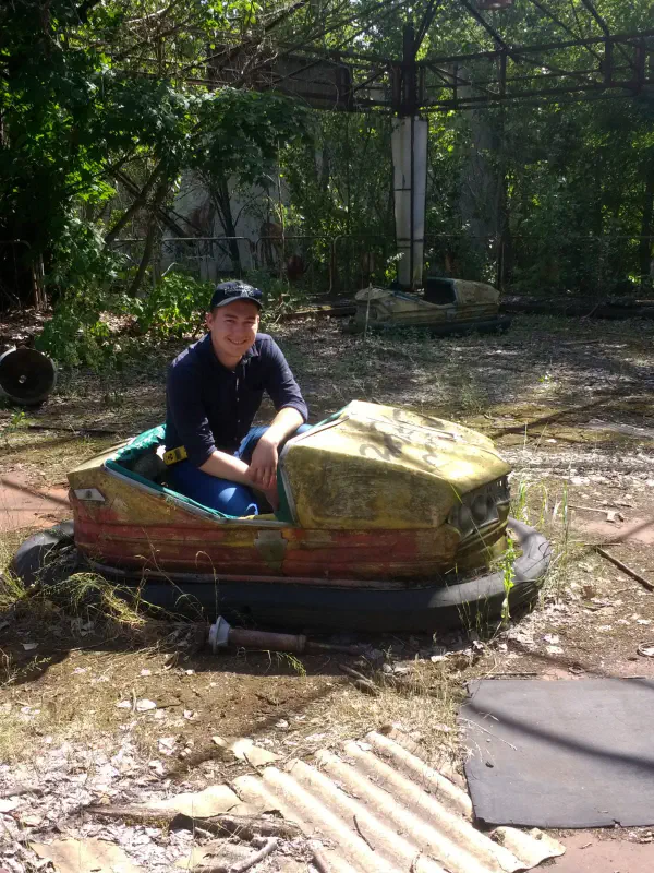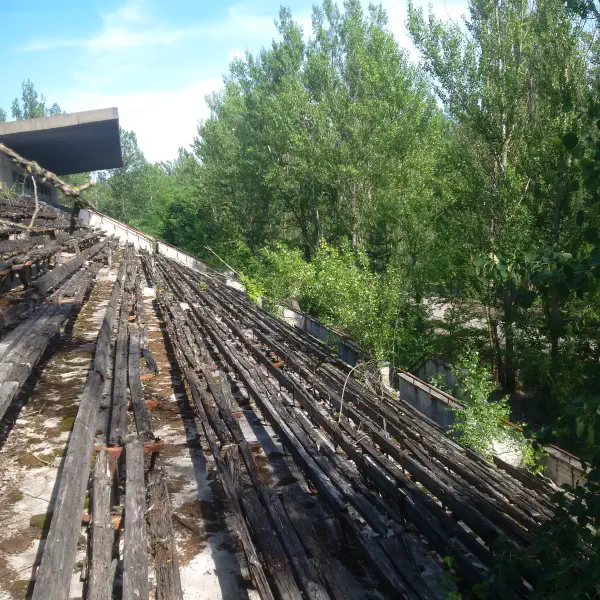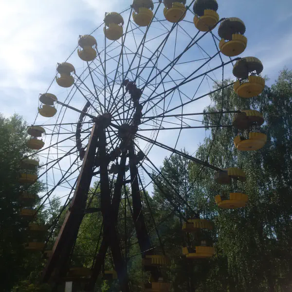 We also ticked off the Pripyat fairground and built-but-never-used sports stadium—there was a specific spot on the underside of one of the Ferris wheel capsules where the radiation would spike the from the usual background level of ~0.2 μSv to ~500 μSv because the liquidators missed that spot when they were hosing everything down.