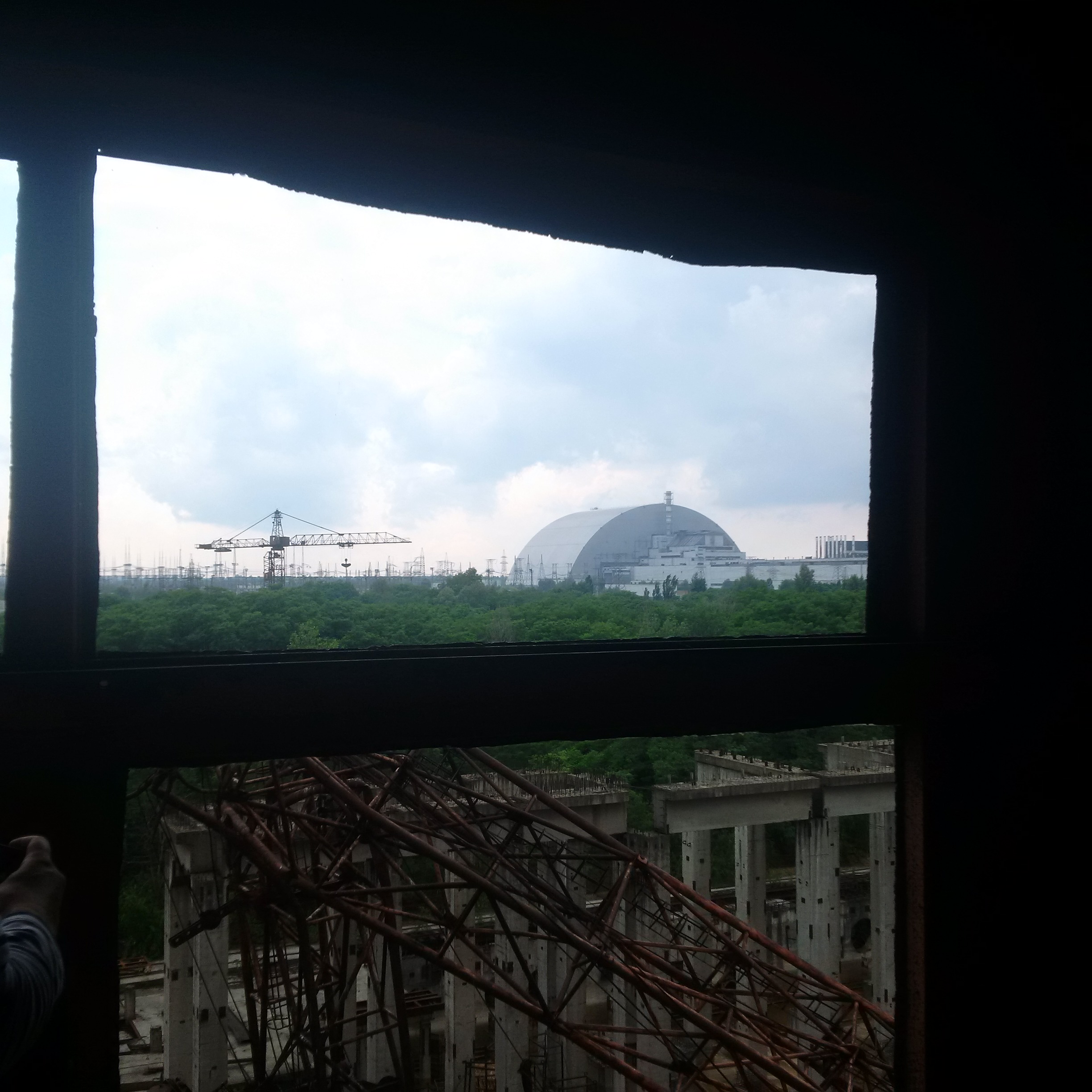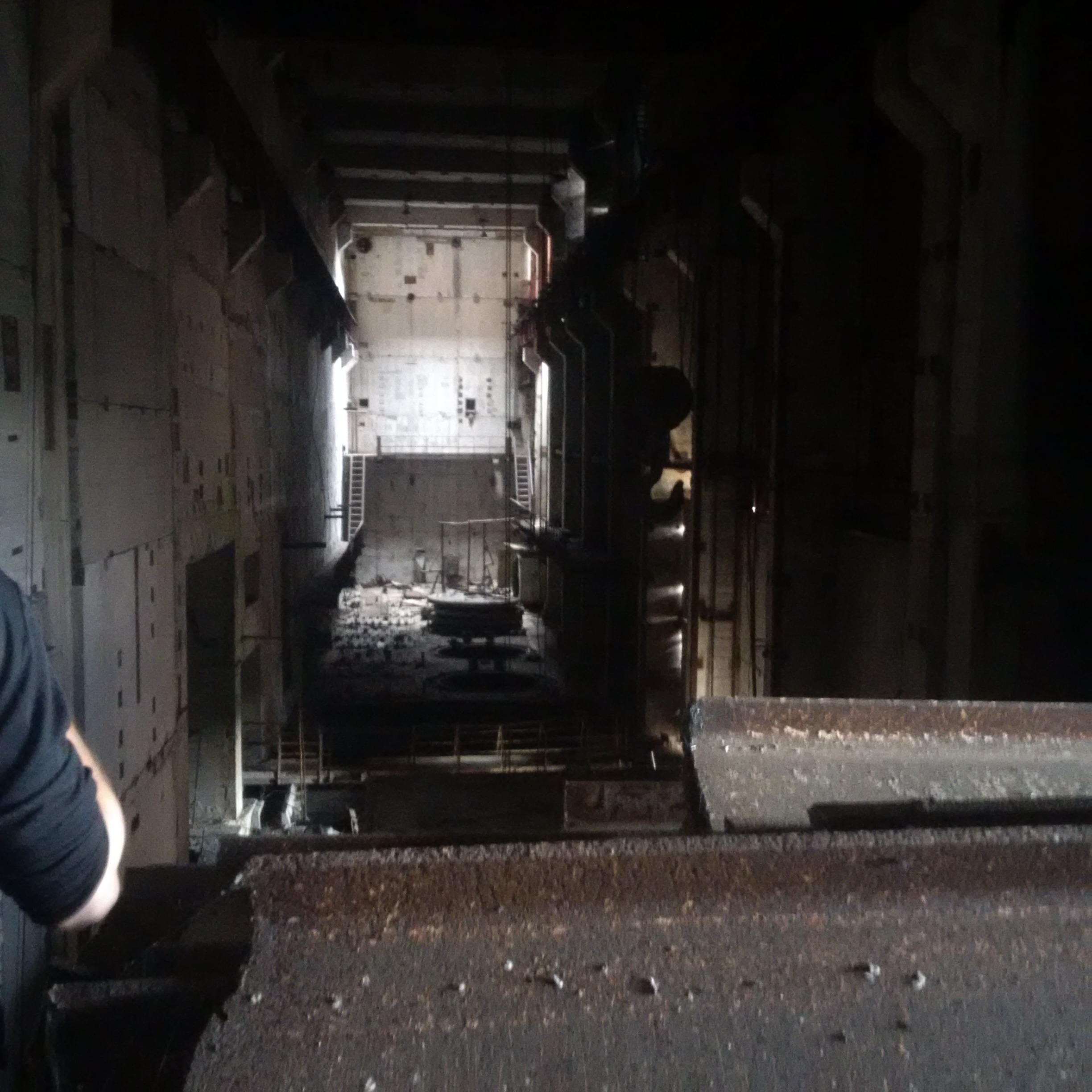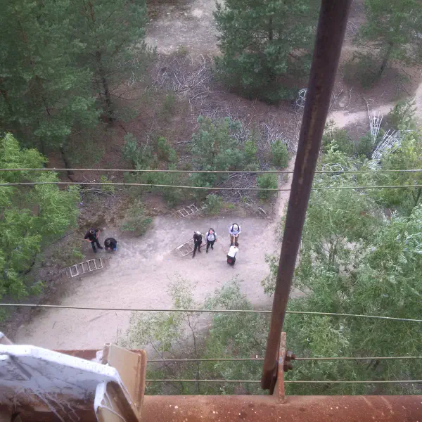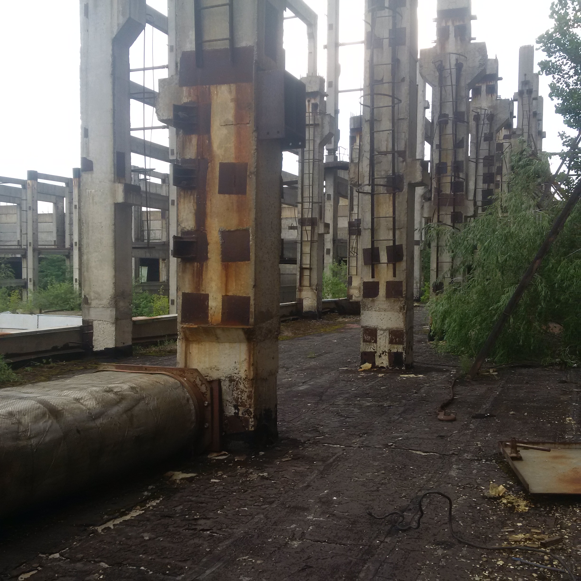 We walked along it and saw that all the lowest-level ladders had been removed because a Belarussian stalker [i.e.. an illegal Zone explorer] fell and died a few years ago. As we got to the end, our guide pointed to the remaining ladder: they missed that one. Cue the bolder of us clambering up, although as I popped my head over the ladder about 8 storeys up and noticed the walkway there slanted about 40 ° sideways, coinciding with a clap of thunder and the coming of rain, we decided to call it quits there: