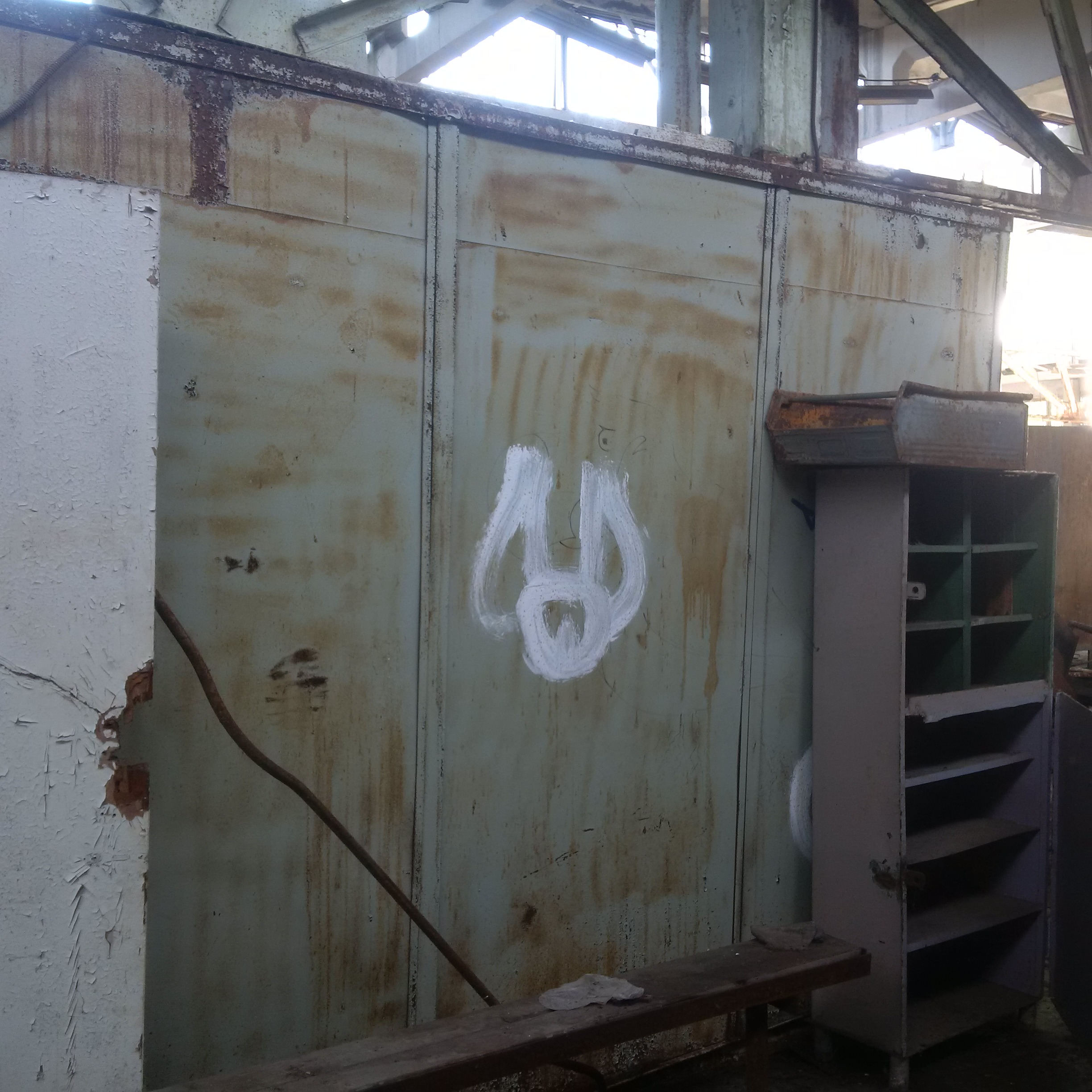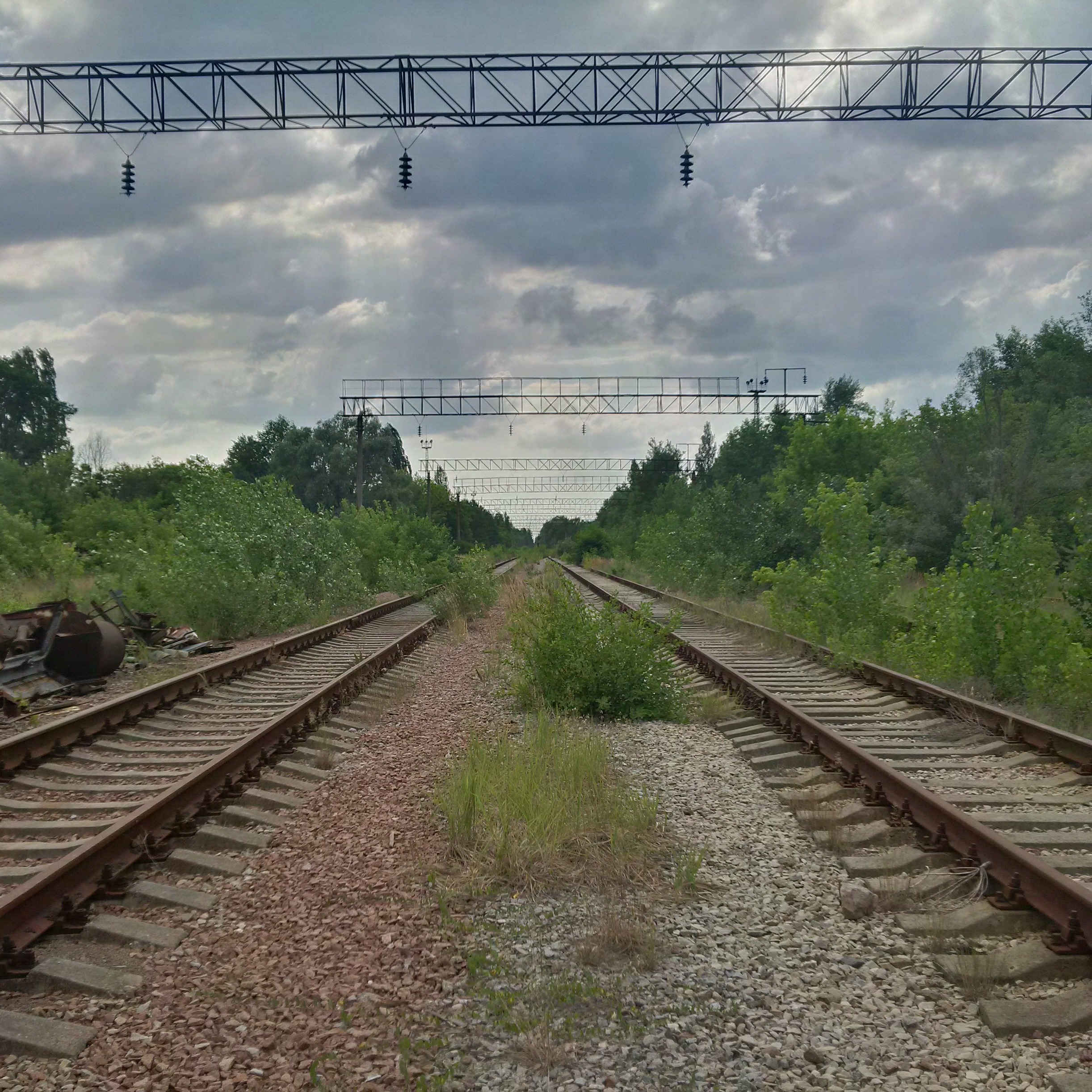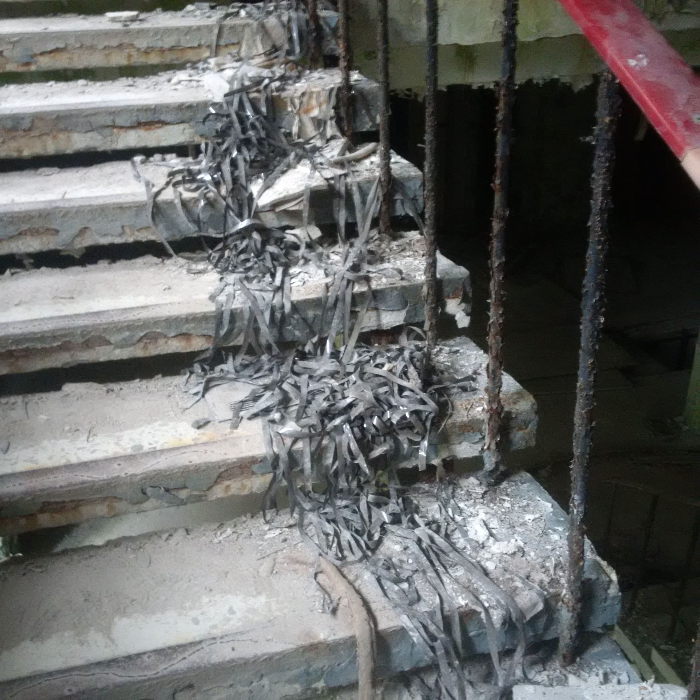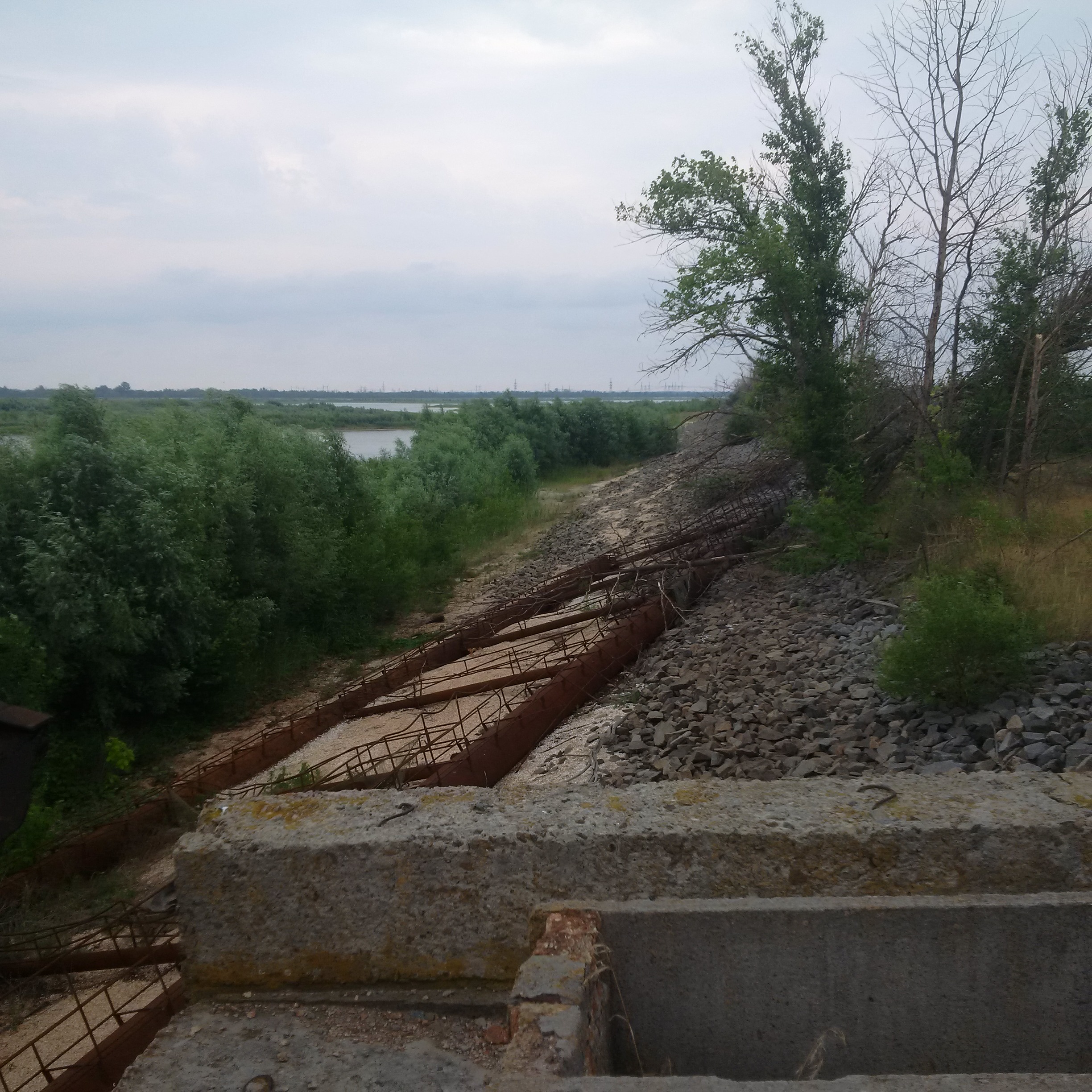 We walked along it and saw that all the lowest-level ladders had been removed because a Belarussian stalker [i.e.. an illegal Zone explorer] fell and died a few years ago. As we got to the end, our guide pointed to the remaining ladder: they missed that one. Cue the bolder of us clambering up, although as I popped my head over the ladder about 8 storeys up and noticed the walkway there slanted about 40 ° sideways, coinciding with a clap of thunder and the coming of rain, we decided to call it quits there: