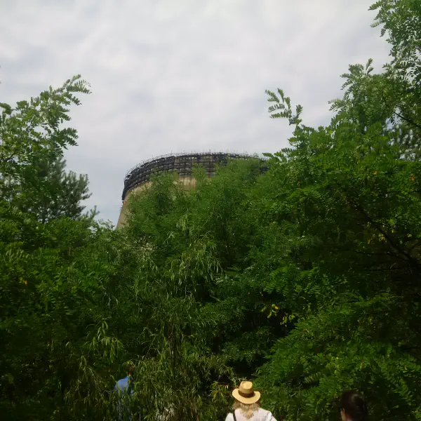 We stopped outside the reactor, now enclosed in the shiny €2.1bn (and only good for 100 years) New Safe Confinement, on the way to our hotel in Chernobyl town within the 25 km exclusion zone. There’s a surprising number of people working in the Zone these days, mostly nuclear plant workers dismantling the old reactor under the Confinement and a lot of military. We weren’t given a clear reason why there seemed to be so many soldiers about, since they obviously aren’t going to be involved in the reactor work, so Harriett and I have a sneaking suspicion some Ukrainian powers-that-be have realised they have a big area of nothing to hide something in—our guide also said that flying a drone in the Zone is illegal because you might see something you’re not supposed to (before promptly launching his drone, of course).