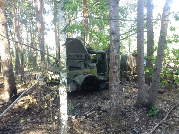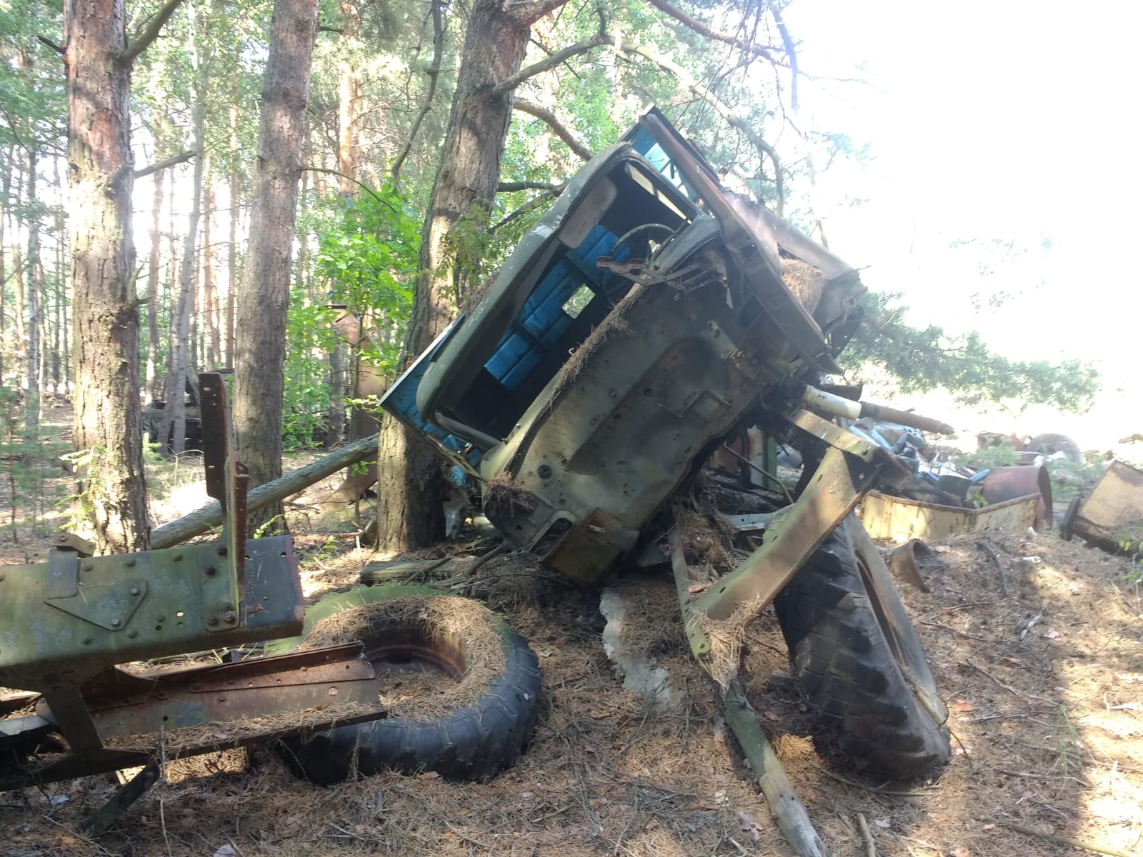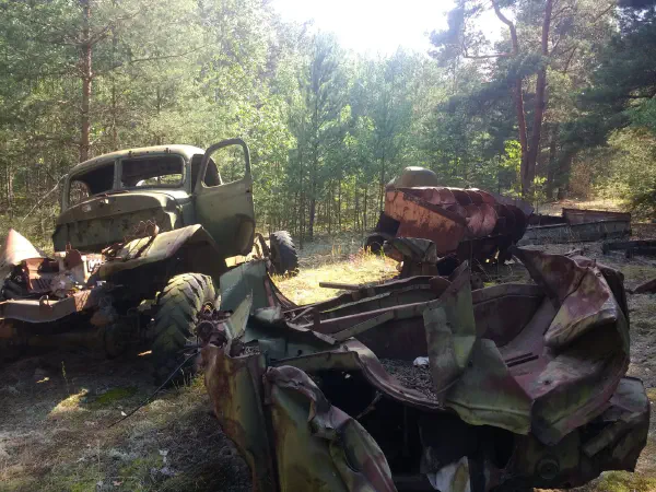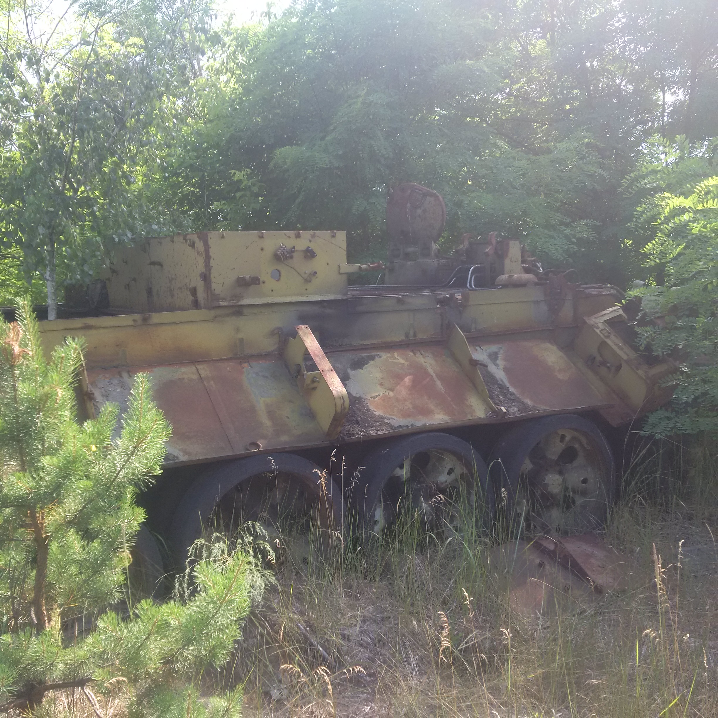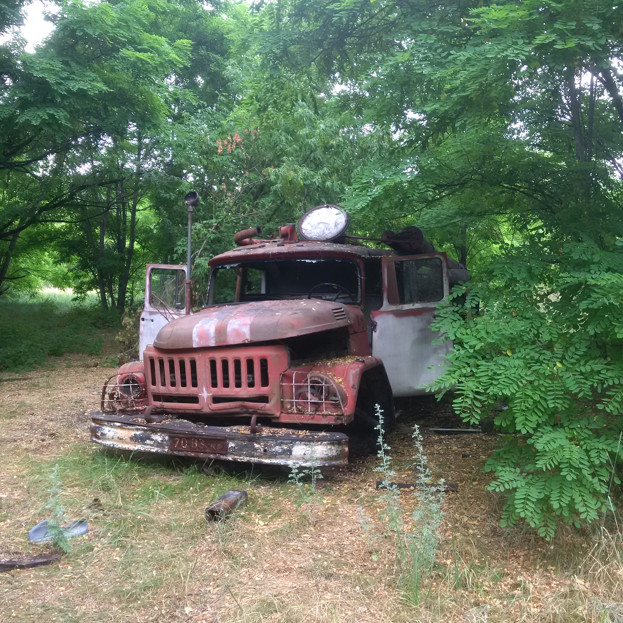 We passed into the 10 km inner zone and drove past the Red Forest, one of the most radioactive places in the Zone, at which point everybody’s dosimeters started beeping madly: