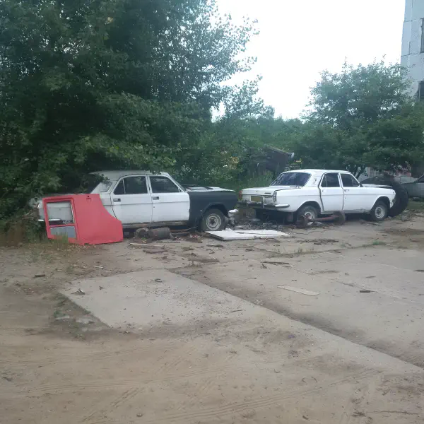 Vehicle graveyard, railway station and drained lake