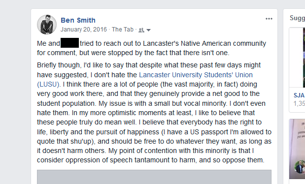 On January 18th 2016, spiked published their annual Free Speech University Rankings. The rankings attract the same predictable reactions from the British press each year—the Telegraph and Spectator are apoplectic about the supposed death of free speech whilst the likes of the Guardian say it’s just those pesky bad opinions being suppressed. In 2016 I was one of the hacks having my say. I’d been appointed Head of Marketing for The Tab Lancaster a couple weeks prior and I’d already made a minor name for myself covering the Gatwardsaga.
