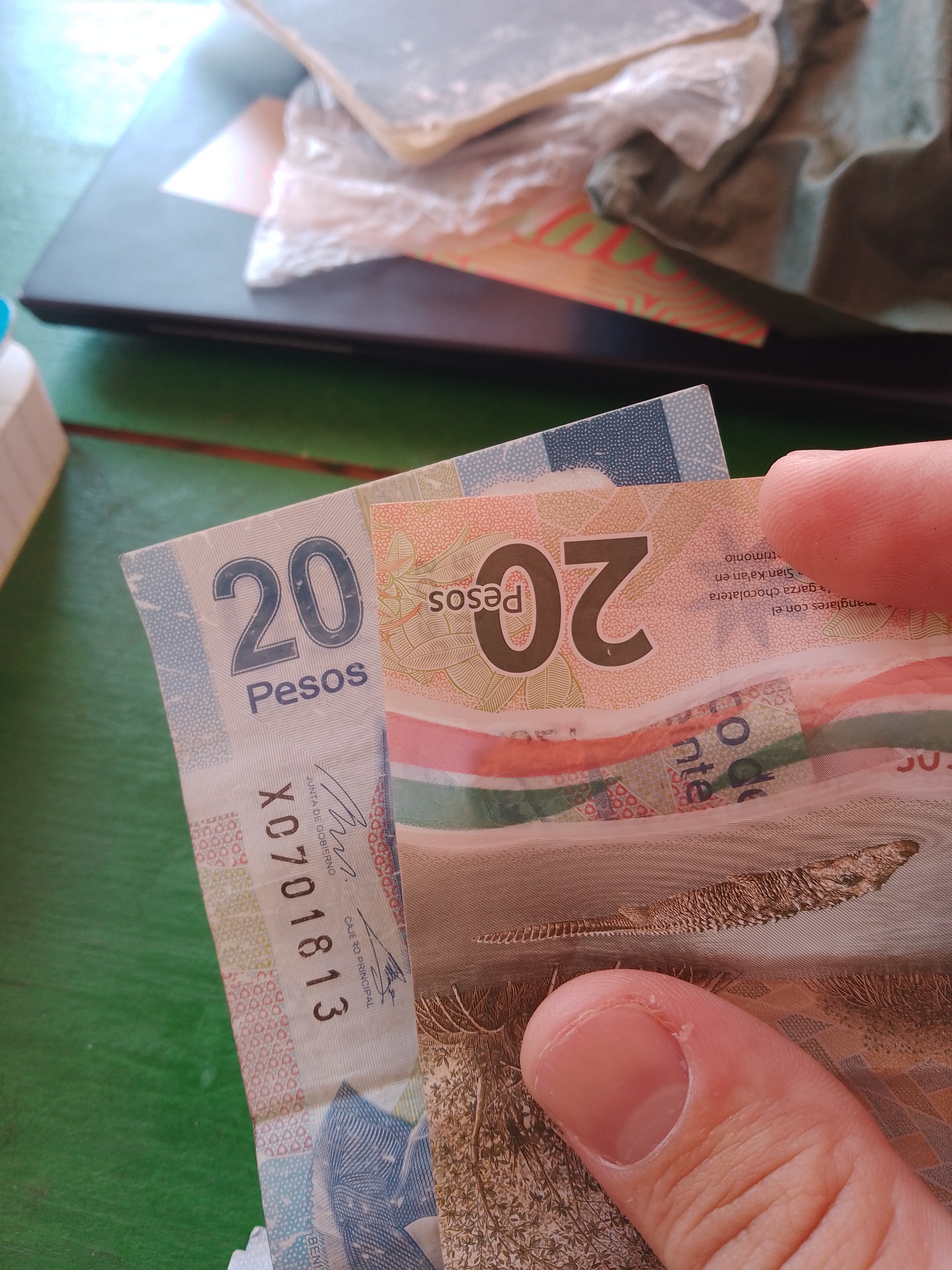 We found one place that did make copies if you emailed things to them, but they didn’t have any Wi-Fi. We found another that also did copies, but was staffed by the world’s slowest man: it took us no less than 40 minutes to get from asking for the password to getting it. Eventually I got everything printed off (I had to get someone else to take a photo of my phone with the bank app. open), and the guy charged me 20 pesos; I only had Guatemalan quetzales and some US dollars, so I ended up giving him $10.