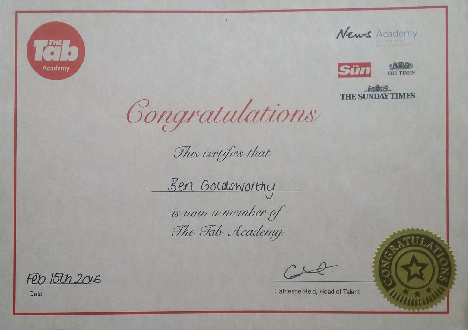 The Tab Academy Photo by the author ~100 words Published: February 15th, 12,015 HE Last modified: February 15th, 12,015 HE Author: Internal Links Certificate (.png)
